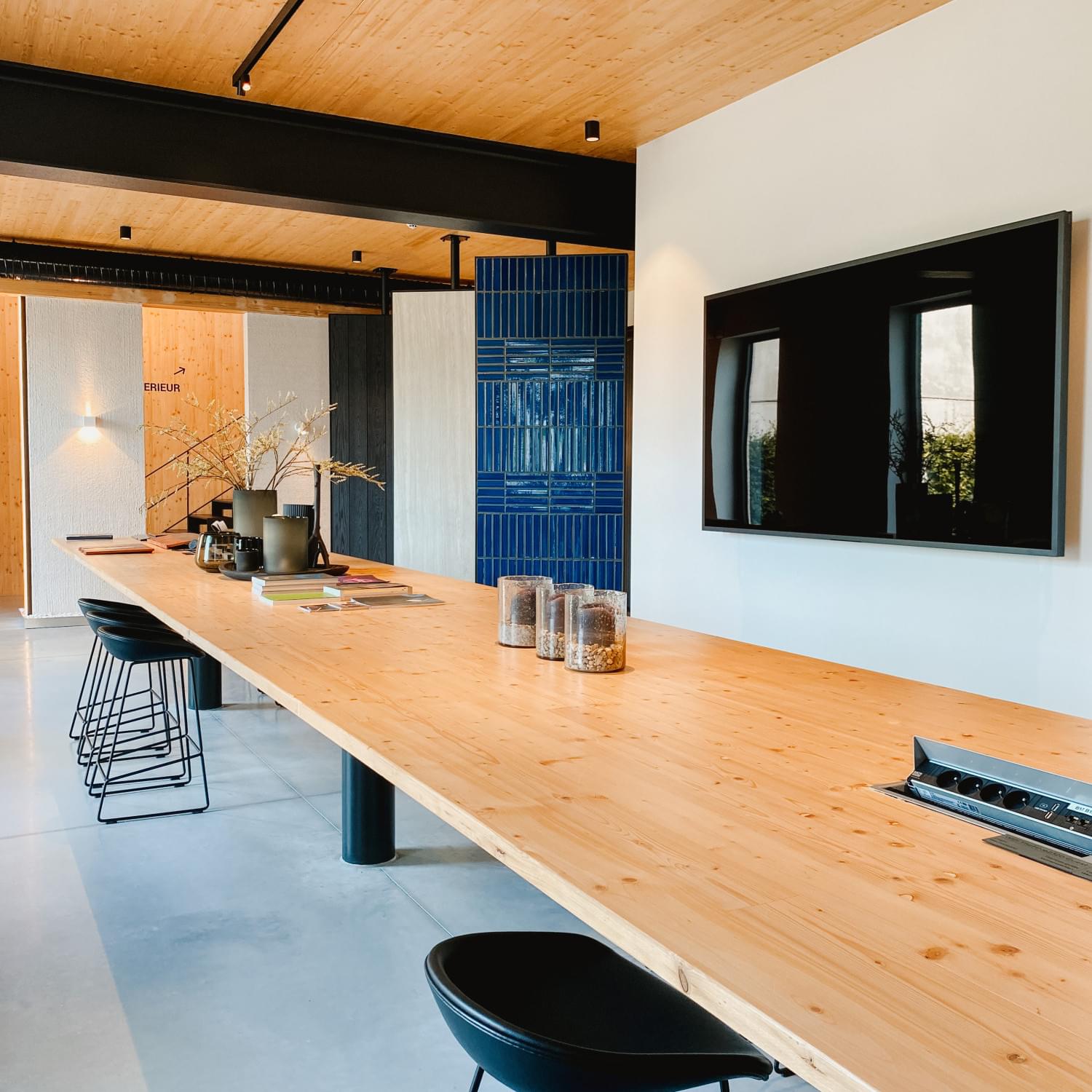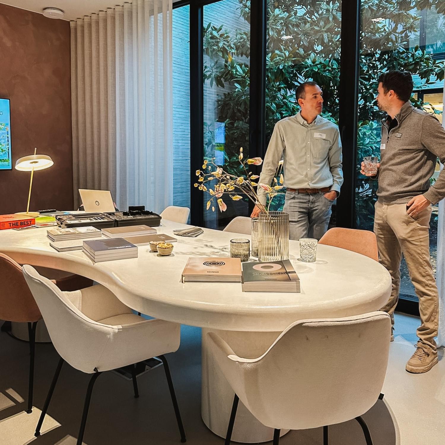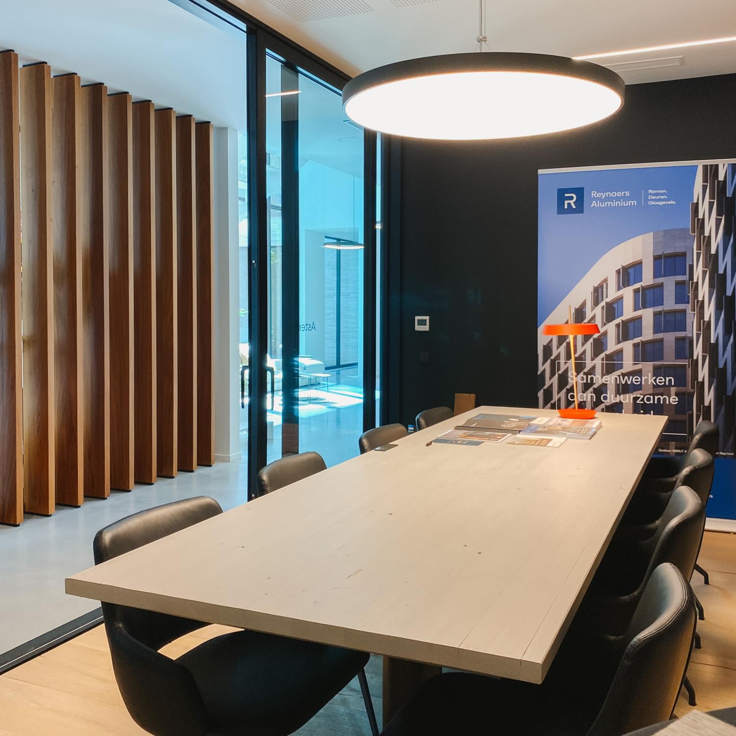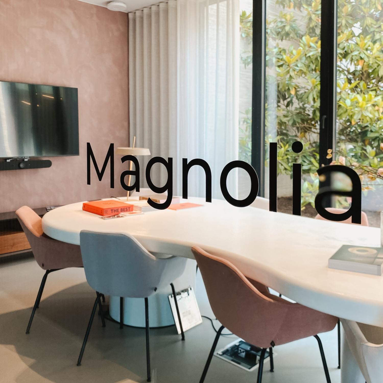 Magnolia is een aangename ruimte naast de toonzaal, met een interactief tv-scherm en toegang tot de patio — ideaal voor een vergaderbreak in de buitenlucht. Inclusief koffie, plat- en bruiswater. Frisdranken, wijnen en cateringmogelijkheden vanaf 6 personen zijn op aanvraag beschikbaar.