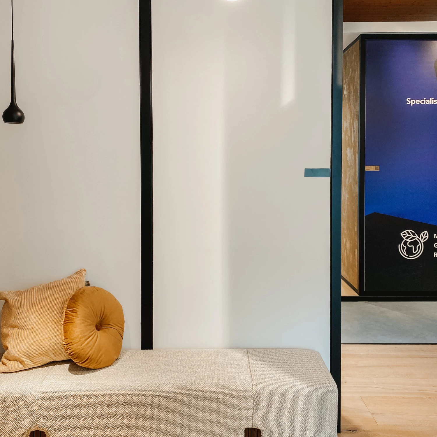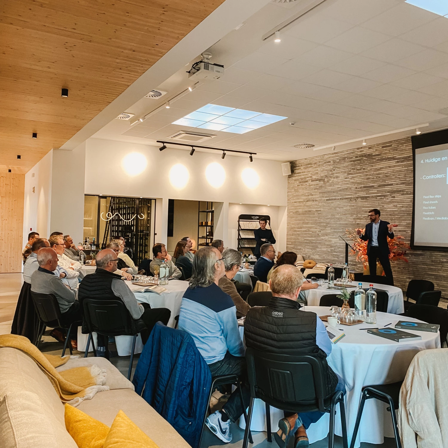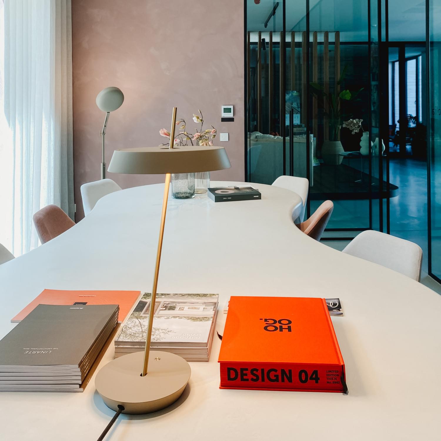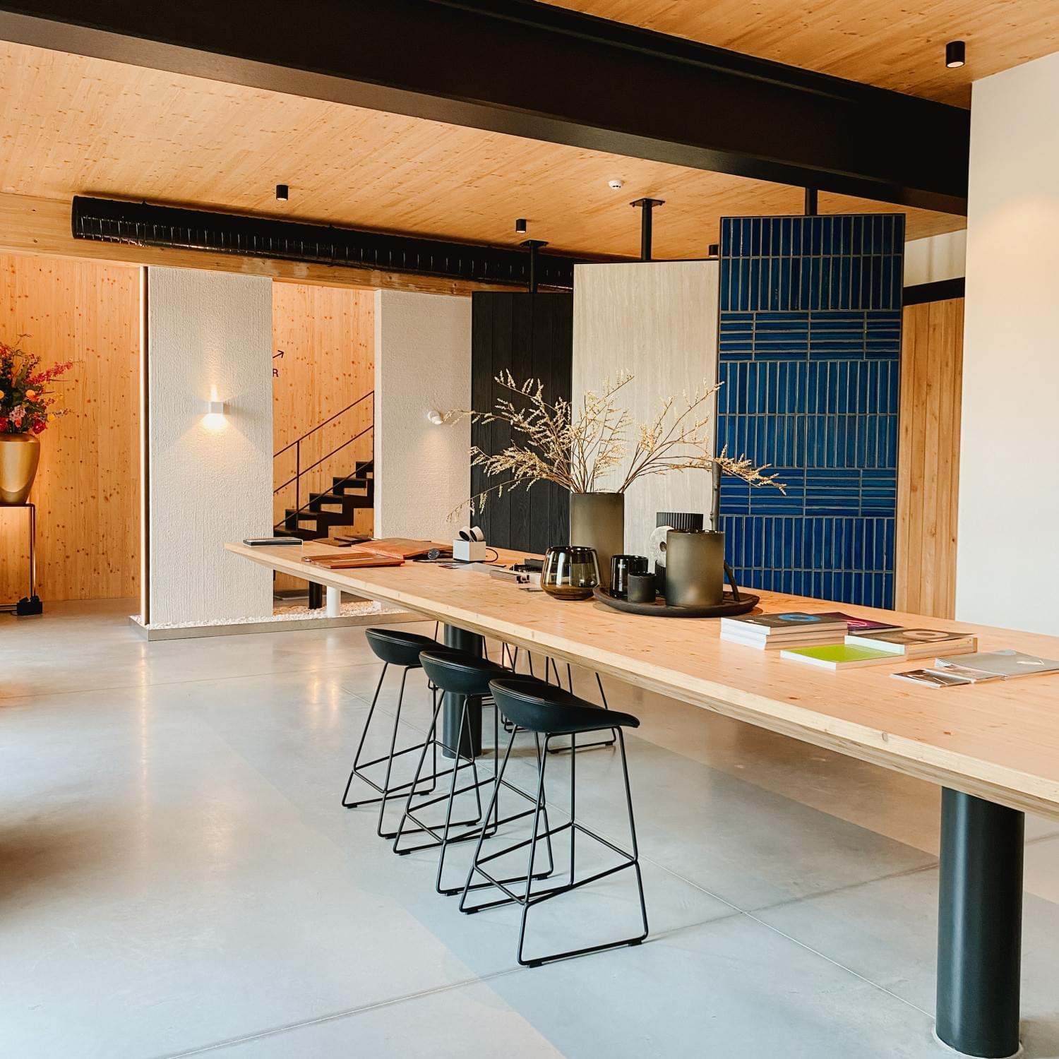 Magnolia is een aangename ruimte naast de toonzaal, met een interactief tv-scherm en toegang tot de patio — ideaal voor een vergaderbreak in de buitenlucht. Inclusief koffie, plat- en bruiswater. Frisdranken, wijnen en cateringmogelijkheden vanaf 6 personen zijn op aanvraag beschikbaar.